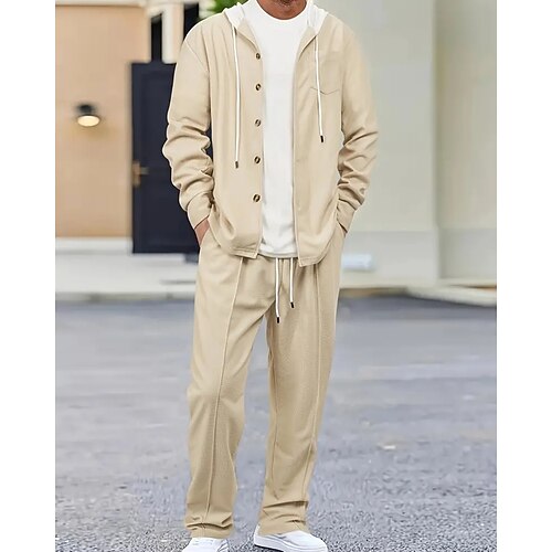 Per uomo Giacca Leggera Giacca a nido d'ape Giacca Casual Set Vacanza Quotidiano Traspirante Tasca 2 Pezzi Primavera Autunno Blocco di colori Moda Classico Con Cappuccio Regolare Nero Bianco Cachi