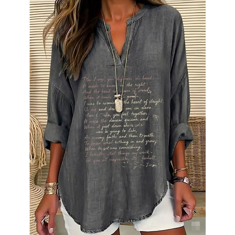 Women's Shirt Tunic Graphic Letter Bohemia Vintage Daily Long Sleeve V Neck Regular Tops Daily Holiday Print Gray Summer Spring