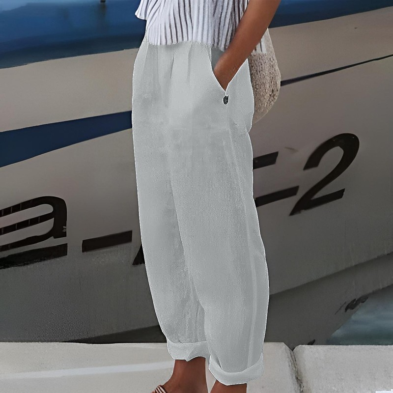 Women's Plus Size Cotton Linen Pants Simple Casual Comfort Pure Color Micro-elastic Home Street White Blue Green Khaki Summer Spring