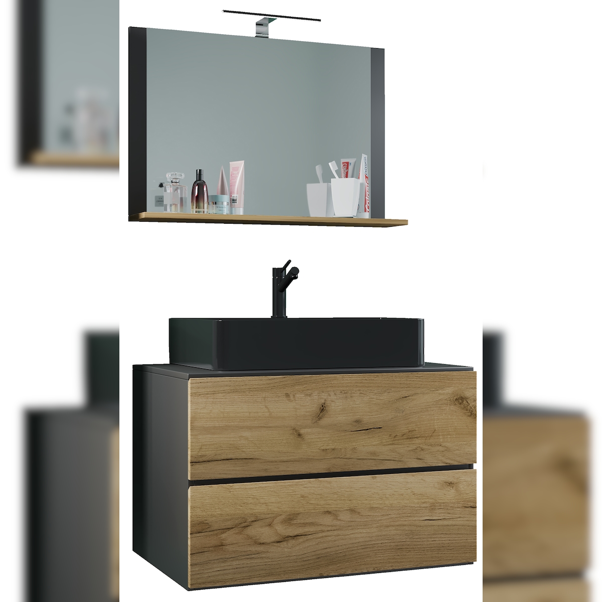 VCM Badmöbel Waschtisch Lendas Anthrazit / Honig-Eiche H. 134 x B. 80 x T. 51 cm