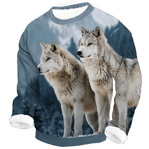 Herren Wolf 3D-Druck Fleece Pullover Täglich Lässig Fantasie Rundhalsausschnitt Heim Party Geschenk Streetwear Blau 1 Blau 2# Braun 3D-Druck Herbst Winter Designer S M L XL XXL XXXL