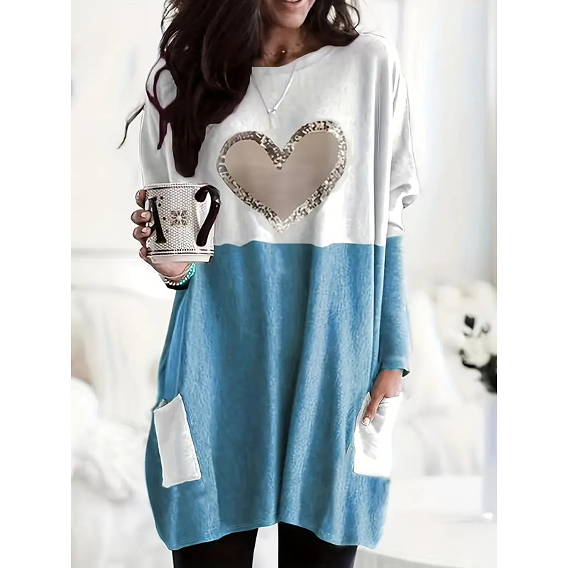 Women's T Shirt Heart Graphic Fashion Long Sleeve Crew Neck Round Neck Long Tops Daily Going out Weekend Pocket Print Blue Pink Khaki Gray Spring Fall