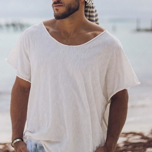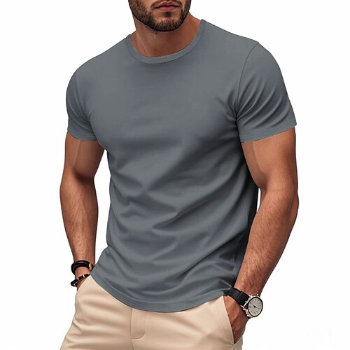 Herren T Shirt Kurzarm Rundhalsausschnitt Frühling Sommer Einfach Mode Lässig Bequem Rohkante Straße Ferien Strand Schwarz Weiß Leicht Grün Top T-Shirt für Herren