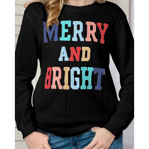 Per donna Maglietta Grafico Lettera Vintage Moda Elegante Manica Lunga Girocollo Top Regolari Quotidiano Weekend Stampato Nero Rosso Blu Grigio Primavera Autunno
