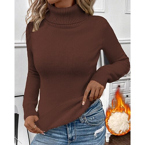 Per donna Felpa Maglione Elegante Moda Streetwear Tinta unica Dolcevita Lavorato a maglia Manica Lunga Top Regolari Maglia All'aperto Casa Lavoro Nero Bianco Autunno Inverno