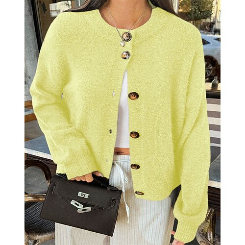 Per donna Cardigan Casual Morbido Tinta unica Treccia Colletto a Camicia Tasca Lavorato a maglia Manica Lunga Top lunghi Maglia Quotidiano Uscire Weekend Nero Rosso Autunno