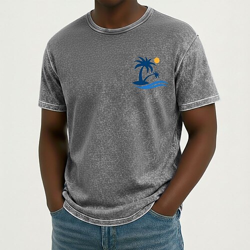 Per uomo Hawaii Palma di Cocco Maglietta Maglietta per lavaggio minerali Manica Corta maglietta Lavaggio acido Girocollo Camicia Vacanza Vintage Retrò Casuale Spiaggia Viaggio Blu Viola Grigio Estate