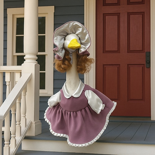 Gänse-Outfit mit Haube, Gänsekleidung für eine 58-64 cm große Gänsefigur aus Beton, Frühlingsdeko für den Garten, nur das Outfit, Gans nicht enthalten