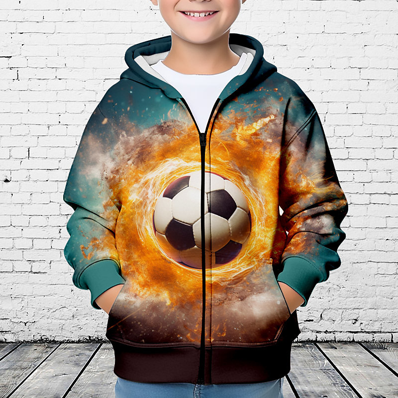 Boys 3D Football Hoodie Coat Outerwear Long Sleeve 3D Print Fall Winter Fashion Streetwear Cool Polyester Kids 3-12 Years Outdoor Casual Daily Regular Fit