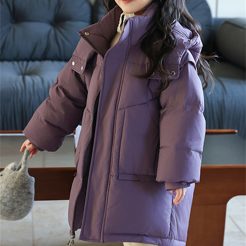Kids Girls' Down Jacket Puffer Jacket Solid Color Sports Pocket Keep Warm Windproof Outdoor Coat Outerwear 4-12 Years Winter Black Purple Brown