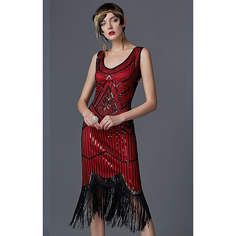 Roaring 20s 1920s Cocktail Dress Knee Length Flapper Dress Dress Outfits Normal Sleeveless The Great Gatsby Charleston Plus Size Wedding Guest Sequins Tassel Fringe Sequin V Neck Fancy Dress Women's