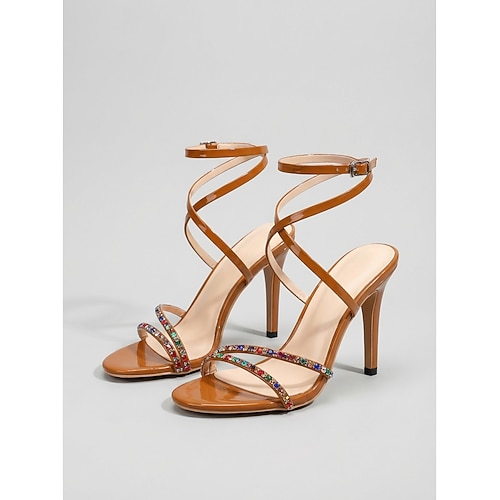 Sandali da donna con tacco alto e cinturini in strass, scarpe eleganti a punta aperta per cocktail party e balli di fine anno. eventi serali