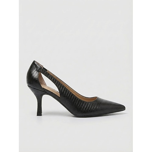 Décolleté professionali da donna con stampa coccodrillo - eleganti scarpe con tacco alto a punta con intaglio laterale, perfette per l'ufficio e le riunioni di lavoro. abbigliamento formale da lavoro
