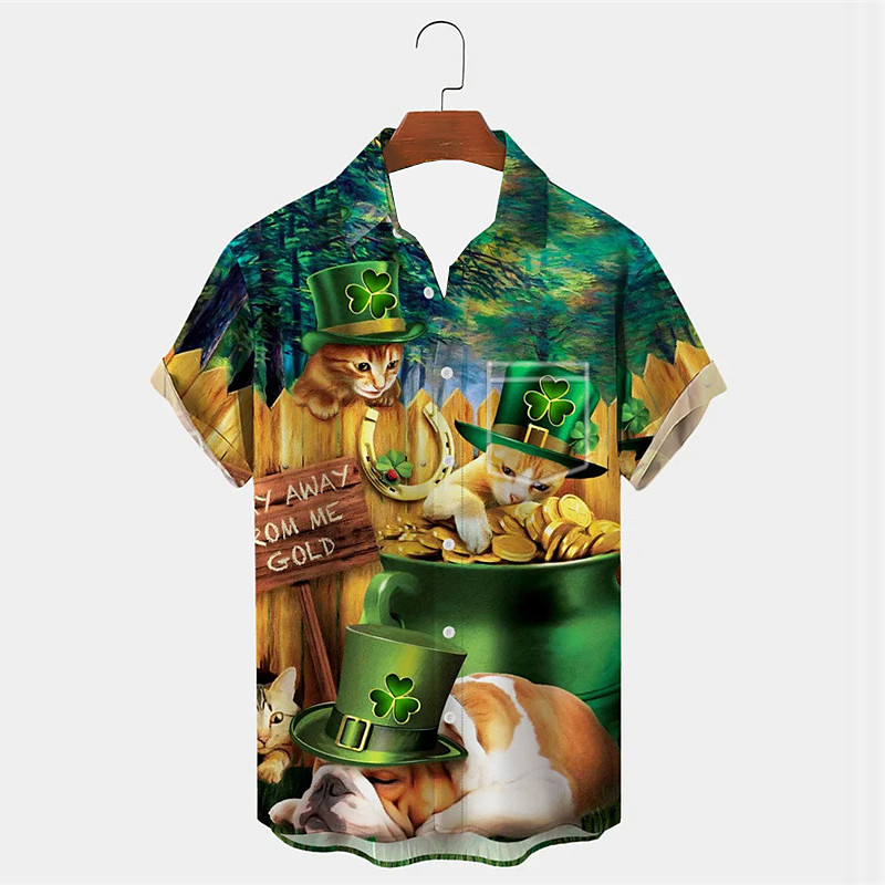 St.Patrick's Day Four Leaf Clover Casual Men's Shirt Daily Wear Going out Weekend Autumn / Fall Turndown Short Sleeves Green S, M, L 4-Way Stretch Fabric Shirt St.