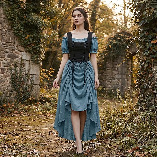 Retrò Vintage Medievale Rinascimento Lunghezza lunga Vestito Costume Per donna Halloween Mascherata Festa a Tema Fiera Rinascimentale Festival Adulti Vestito Primavera Estate