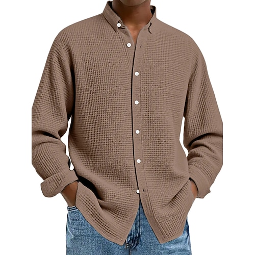 Per uomo Camicia Camicia a nido d'ape Camicia casual Camicia con Bottoni Nero Bianco Vino Blu marino Blu Manica Lunga Semplice Bavero Casuale Quotidiano Abbigliamento Moda Streetwear