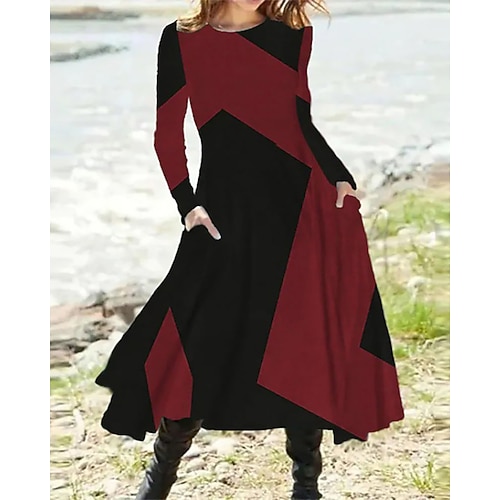 Per donna Abito Midi Abito Stampato Vintage Moda Moderno Quotidiano Ferie Uscire Vestibilità regolare Geometrico Manica Lunga Girocollo Vino Marrone Grigio scuro Grigio Primavera Autunno Inverno