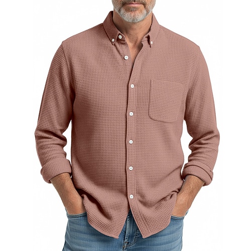 Per uomo Camicia Camicia a nido d'ape Camicia button-down Camicia casual Blu Rosa Vino Blu marino Manica Lunga Semplice Colletto italiano visibile Affari Quotidiano Abbigliamento Moda Moderno Casual