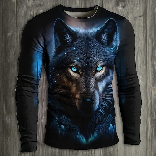 Per uomo Animale Lupo Maglietta Manica Lunga maglietta Stampa 3D Girocollo Camicia Moda Essenziale Streetwear Casuale Quotidiano Blu Blu lago Arancione Estate Primavera Abbigliamento S M L XL XXL XXXL