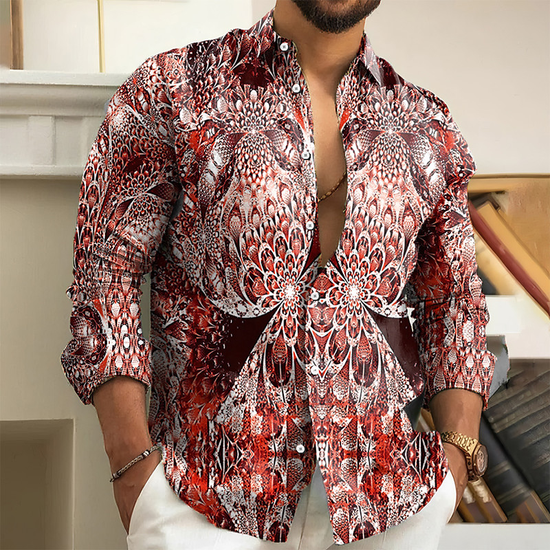 Men's Floral Print Flowers Shirt Button Up Shirt Long Sleeve Hawaiian Outdoor Vacation Summer Spring Turndown 3D Print Collared Shirts Red Blue Green Khaki