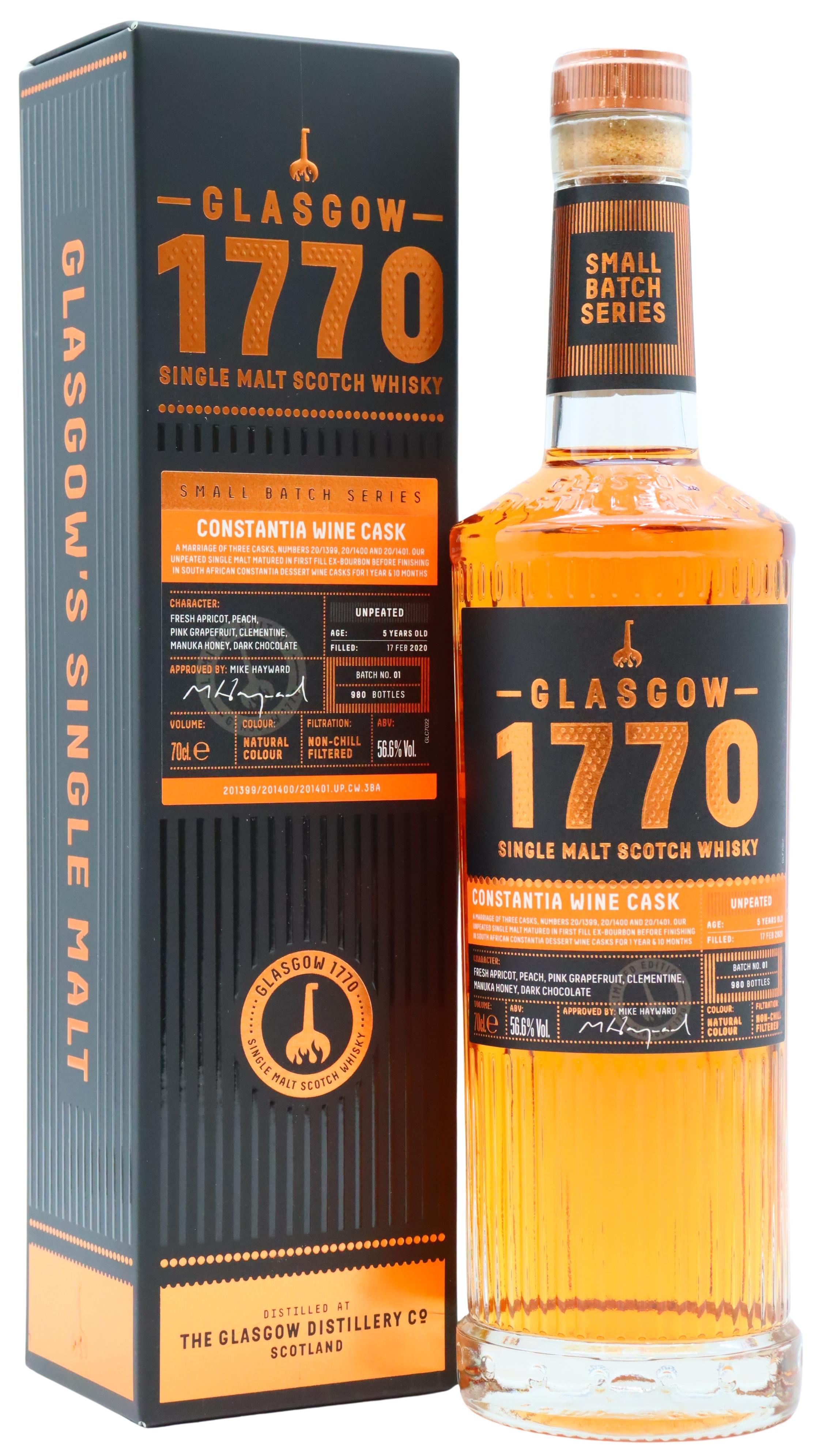 Glasgow 1770 Small Batch Series - Constantia Wine Cask Unpeated 5 year old Whisky