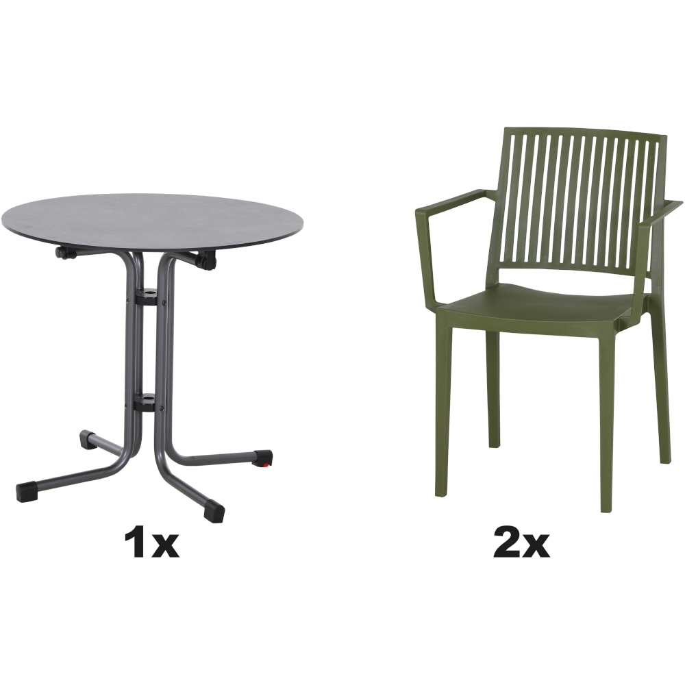 SIENA GARDEN Urban Lights Set 3teilig Square Sessel gastrotauglich grau mit Tisch Sola 80x80
