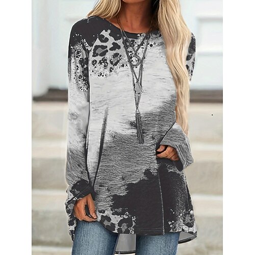 Damen T Shirt Grafik Geometrie Vintage Stilvoll Lässig Langarm Rundhalsausschnitt Lange Oberteile Täglich Druck Blau Orange Grau Herbst Winter