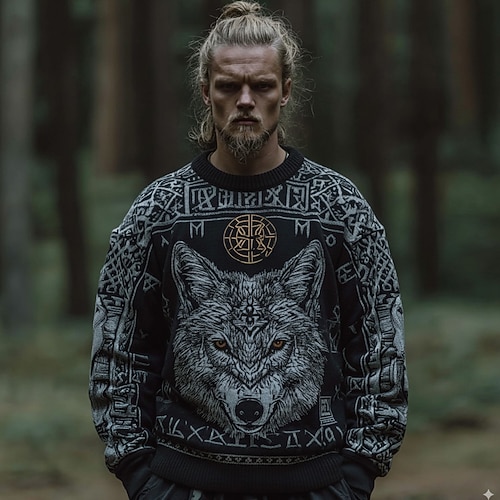 Per uomo Animale Lupo Vichingo Maglione Maglieria Girocollo Retrò Vintage Casual Vacanza Streetwear Quotidiano Stampa 3D Lavoro a maglia Tenere al caldo Manica Lunga Primavera Autunno Inverno Nero