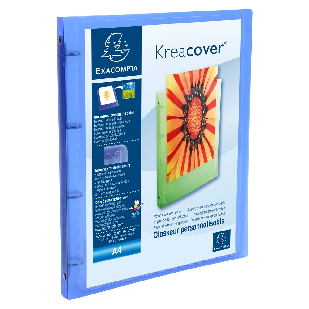 Exacompta Ringbuch aus PP 500µ, 4 Ringe 15mm, Rücken 20mm, 32x25cm für DIN A4, Chromaline Kreacover