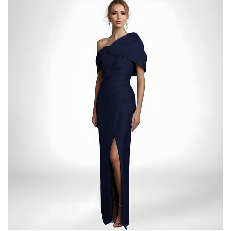Sheath Column Floor Length Evening Gown Ball Gown with Overskirt Formal Dress Elegant Luxurious Sleeveless One Shoulder Wedding Guest Cocktail Party Satin with Overskirt Pure Color