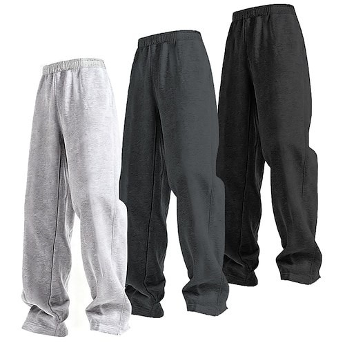 Confezioni multiple Confezione da 3 Per uomo Nero blu navy grigio chiaro Pantaloni Larghi Pantaloni della tuta a gamba dritta Pantaloni plissettati Coulisse Elastico in vita Semplice Vacanza