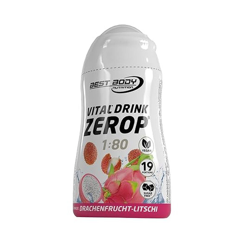 Best Body Nutrition Vital Drink Zerop, Drachenfrucht-Litschi, Original Getränkekonzentrat, Sirup, zuckerfrei, 1:80 ergibt 19 Portionen fertiges Getränk, 48 ml