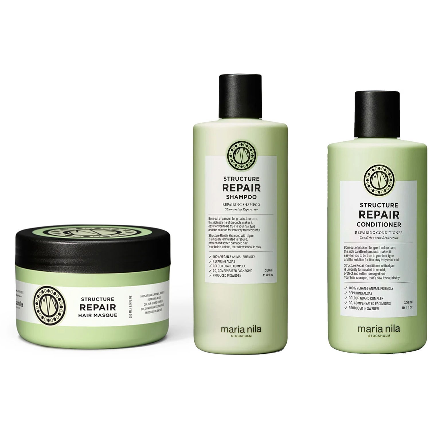 Maria Nila Structure Repair Trio Shampoo 350ml, Conditioner 300ml, Masque 250ml - 900 ml