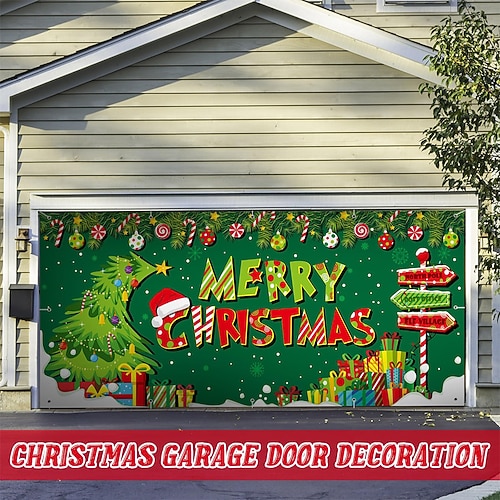 Natale Copertura per porta del garage Grande appeso Albero Negozio di Natale Carino 3D Da serata All'aperto Vacanze Sfondi di ripresa Yarda Arredamento per la casa
