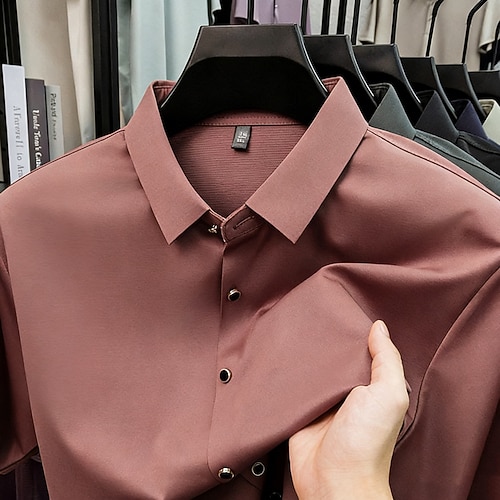 Herren Hemd Kleidhemd Bügelfreies Hemd Einfarbig Outdoor Arbeit Hellrosa Schwarz Weiß Champagner Kurzarm Umlegekragen Sommer Frühling Bekleidung Knöpfe