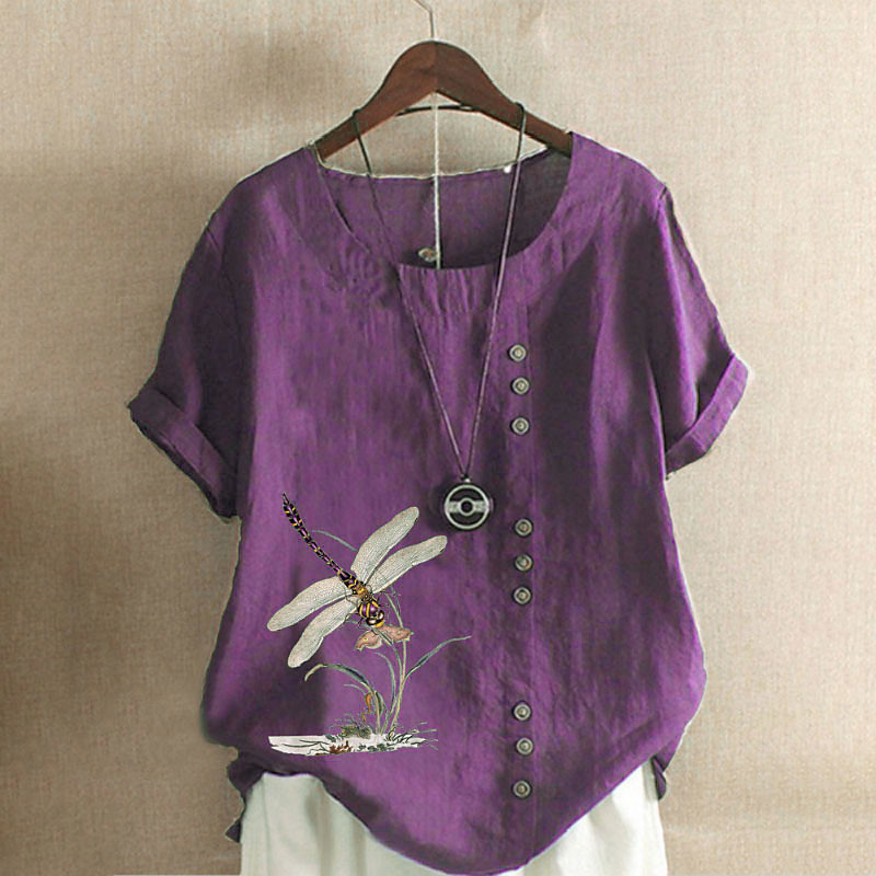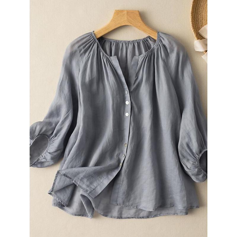 Women's Blouse Solid Color Stylish Casual 3/4 Length Sleeve Crew Neck Regular Tops Daily Buttons Blue Purple Apricot Summer Spring