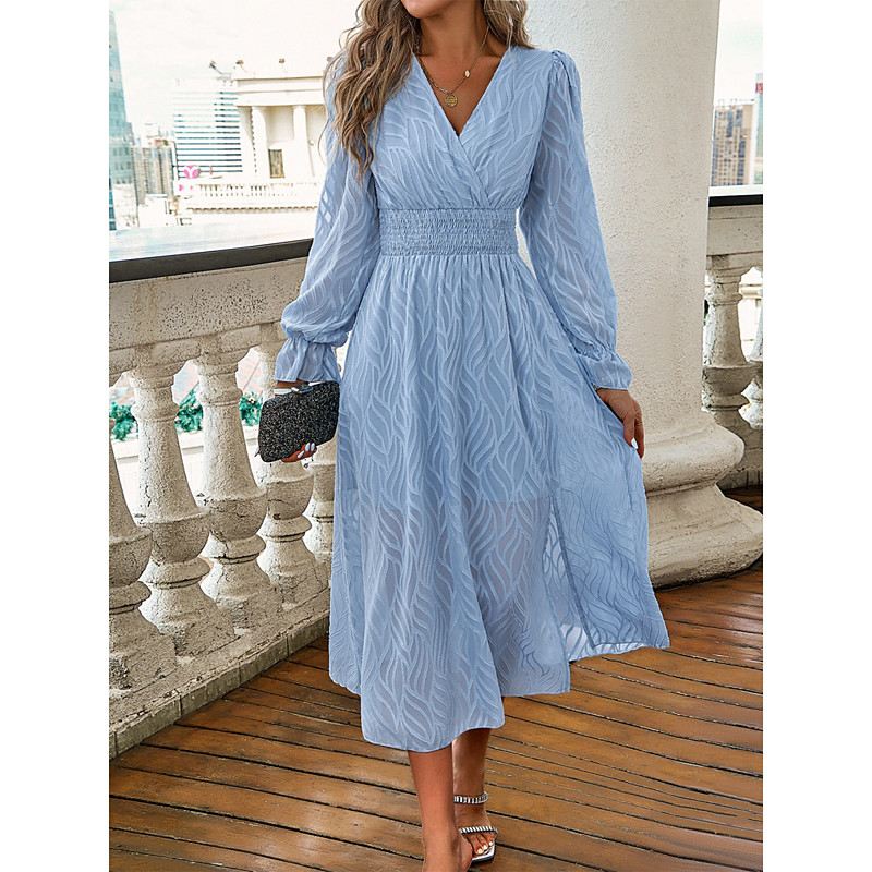 Women's Maxi Dress A Line Dress Casual Daily Loose Fit Floral Long Sleeve V Neck Yellow Wine Red Blue Spring Fall