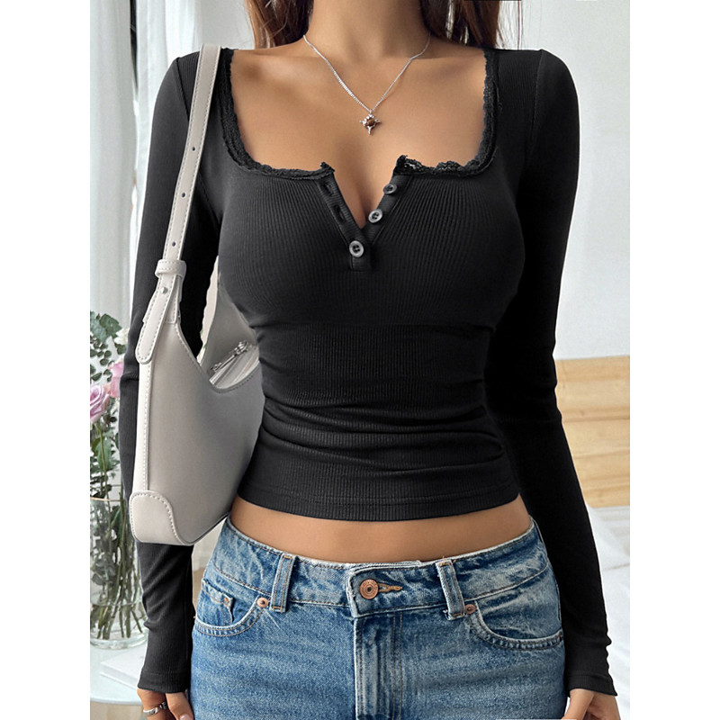 Women's Blouse Floral Stylish Casual Long Sleeve Square Neck Regular Tops Daily Buttons Black White Pink Navy Blue Spring Fall Winter