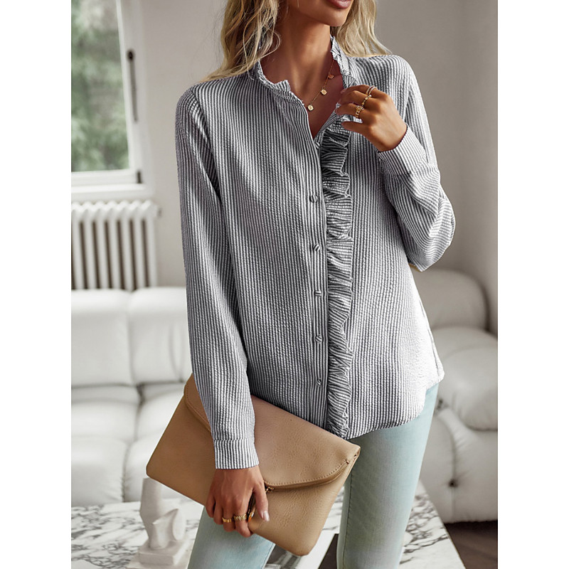 Women's Shirt Blouse Casual Striped Buttons Print Long Sleeve Regular Tops Shirt Collar Daily Black Red Blue Spring Summer