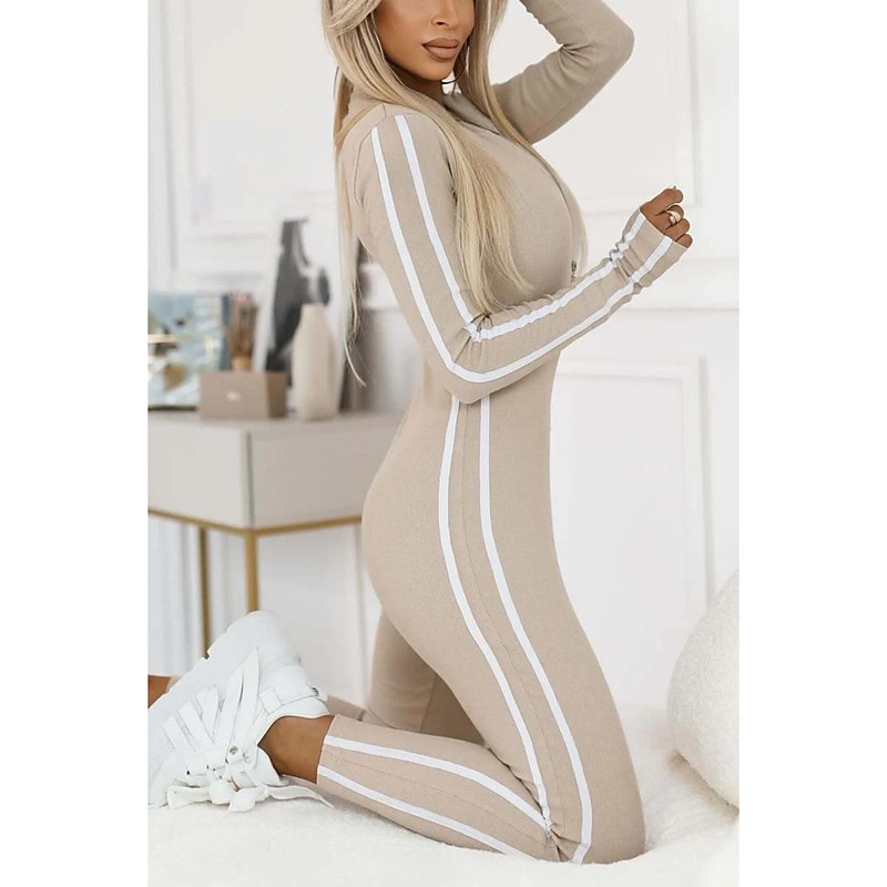 Women's Normal Jumpsuit Active Striped Long Sleeve Round Neck High Waist Print Vacation Daily Slim Black Beige Gray Spring
