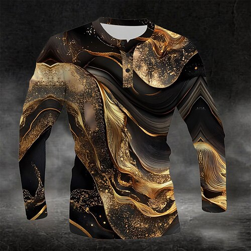 Per uomo Astratto Modello in marmo Maglia Henley Manica Lunga Moda Carino Quotidiano Casuale Ferie Uscire Primavera Autunno Tutte le stagioni Blu marina Nero Blu Giallo Verde Henley Maglietta Henley