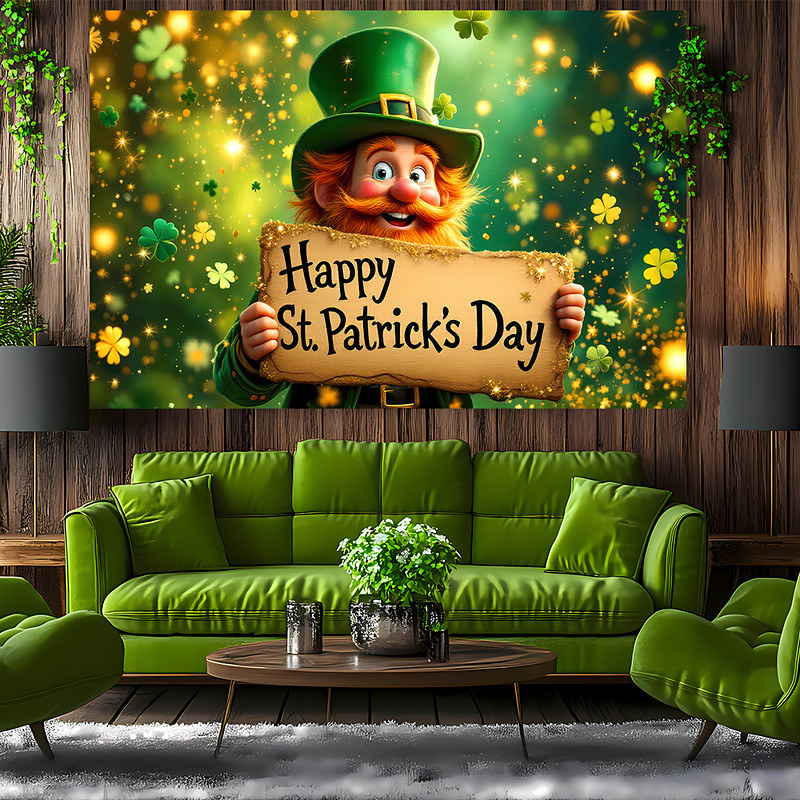 St. Patrick's Day Tapestry Banners Blanket Elf Green Hat Cute Romantic 3D Bedroom Living Room Dorm Teens Room College Dorm Wall Porch Home Decor
