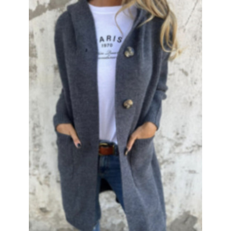 Women's Sweater Cardigan Elegant Fashion Streetwear Solid Color Hooded Knitted Hooded Long Sleeve Long Tops Knit Outdoor Home Daily White Yellow Fall Winter