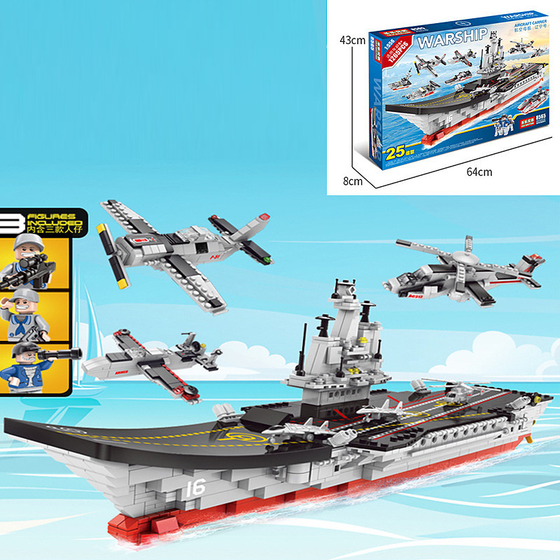 Compatible With Military Aircraft Carrier Destroyer Small Particle Puzzle Assembly Children's Toy Building Block Gift Box Christmas Gift
