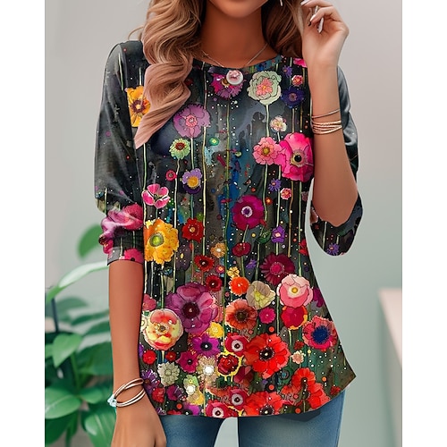 Per donna Maglietta Floreale Casual Manica Corta Girocollo Top Regolari Quotidiano Stampato Nero Bianco Verde chiaro Blu Viola Estate