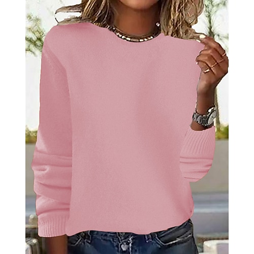 Per donna Felpa Maglione Streetwear Casual Colore Puro Girocollo Traforato Lavorato a maglia Manica Lunga Top Regolari Maglia Quotidiano Ferie Weekend Nero Rosa Autunno Inverno