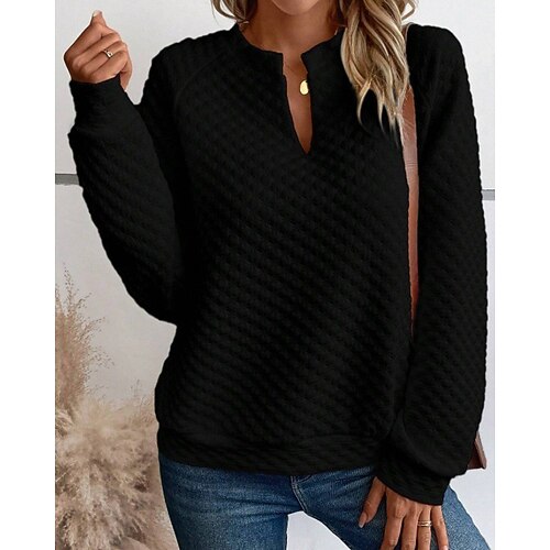 Per donna Top Eleganti Tinta unica Semplice Elegante Signore Moderno Manica Lunga Scollo a V Top Regolari Lavoro Quotidiano Uscire Tasca Nero Bianco Rosa Verde Cachi Autunno Inverno