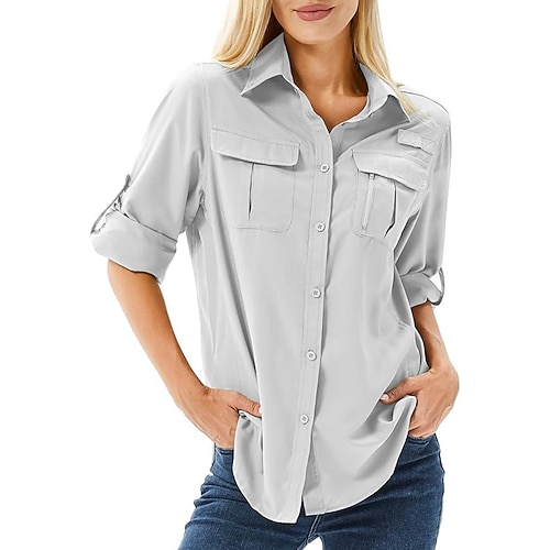 Per donna Blusa Tinta unica Elegante Casual Manica Lunga Girocollo Top Regolari Quotidiano Bottoni Nero Rosa Verde militare Cachi Grigio Primavera Autunno Inverno