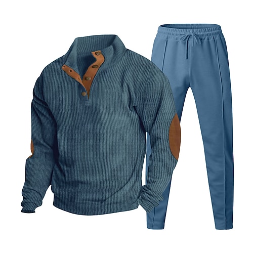 Per uomo Maglia Tuta da Ginnastica Set di abiti Collo alla coreana All'aperto Quotidiano Sportivo Coulisse Tasca Blocco di colori Nero Blu marino Marrone Poliestere Velluto a coste Abbigliamento
