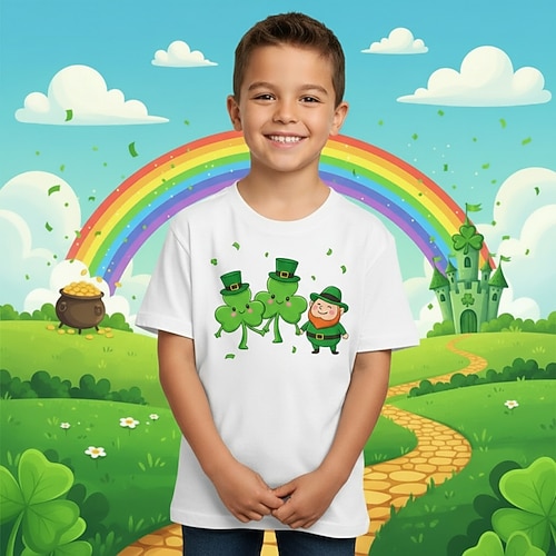 100% Cotone Giorno di San Patrizio Bambini Ragazzi Blu Nero Bianco Trifoglio Giorno di San Patrizio Maglietta Blusa Girocollo Manica Corta All'aperto Abbigliamento Quotidiano Moda Streetwear Designer